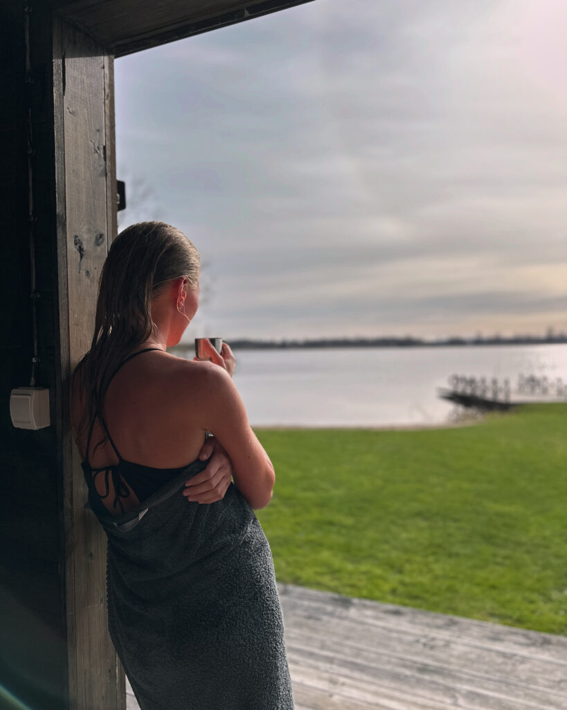Efter en dag av aktiviteter eller tid på golfbanan förändras tempot – bastun värmer, landskapet öppnar upp och stillheten får ta plats.
